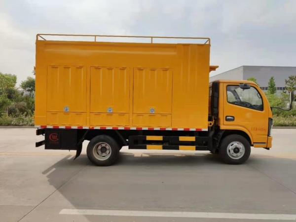 【車輛結構】吸污凈化部分:汽車底盤、廂式結構,內部主要固定裝置為:發電機、真空泵、排污泵、分離箱、污水箱、加藥箱、混凝槽、疊螺機。高壓清洗部分:水箱、柱塞泵、液壓卷盤組成。