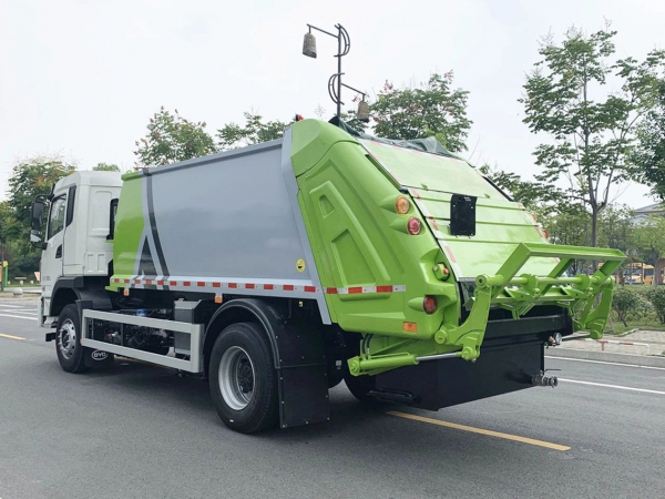 上裝配置:底盤電池提供動力,永磁同步電機驅動,可根據需要實時調速,取力操作與底盤行駛系統無任何關聯,用車體驗感**。優質高強度 Q345 錳鋼制作箱體,尾部帶污水箱,光電感應,海普瑞斯油缸、多路換向閥、皖液齒輪油泵,日本華爾卡密封圈,can 操作模式,帶駕駛室操作,尾部標配三角斗或掛桶翻轉架。標配壓實閥(背壓閥),有效增加垃圾密實度,增加裝載量。