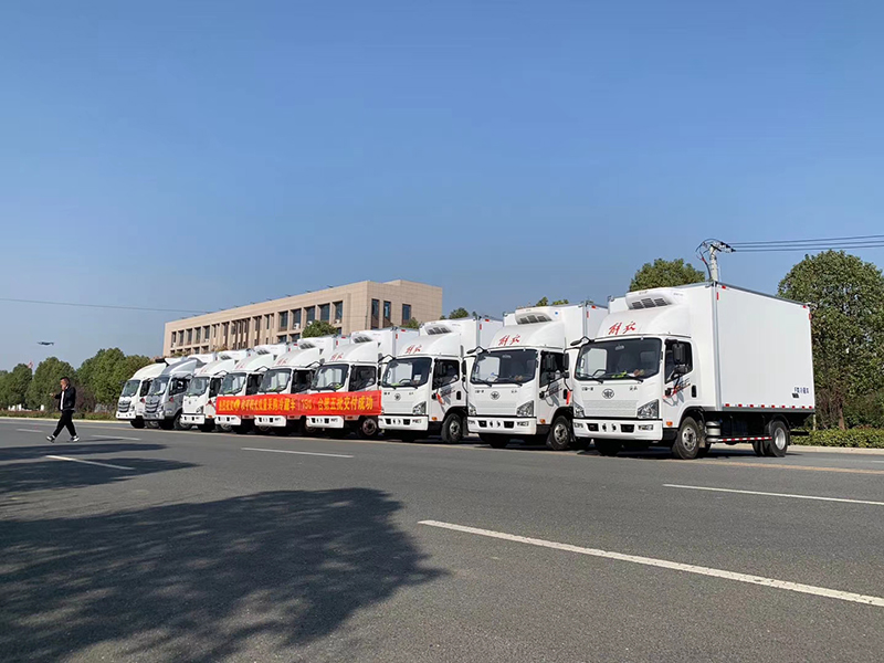 濰柴130馬力發動機,萬里揚六檔變速箱,ABS,1058后橋,7.00R16鋼絲胎,多功能方向盤,空調,電動門窗中控鎖,定速巡航,廂體采用內外玻璃鋼、中間8cm厚聚氨酯保溫板、底板為防滑花紋鋁板,底板鋁合金通風槽,單開側門,不銹鋼門鎖件,安裝-15度制冷機組,其余標配